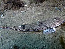 The reticulated dragonet (Callionymus reticulatus) is a species of dragonet native to the northeastern Atlantic Ocean and the Mediterranean Sea where it is found at depths of from 0 to 110 metres (0 to 361 ft). This species grows to a length of 11 centimetres (4.3 in) TL.[2] This species has a flattened head and body, the head has a triangular shape with the eyes placed on the top of the head. It has two dorsal fins with the first one being triangular in shape. It has blue spots along the flanks and four saddle-like markings on their backs which have sharply defined outlines. It is similar to the common dragonet but is distinguished by its smaller size and the sharply defined border around the saddle markings on the back.[3]