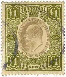In 1900, the numeral issues of 1886 were issued handstamped V.R.I. or additionally surcharged at Zeerust. A year later these were overprinted V.R.I., and in 1902 various Cape revenues were overprinted TRANSVAAL. Later that year a new design depicting King Edward VII was issued.