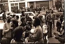 Williams speaking in San Francisco's Board of Supervisors chambers in support of the International Hotel tenants.