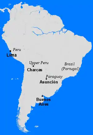 Notable cities in the Viceroyalty of Peru during the revolt, which centered in Asunción.
