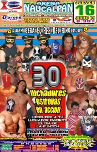 - 1 2 "IWRG @ Naucalpan – Rey del Ring 2009". Wrestling Data. July 17, 2009. Retrieved May 7, 2016.
