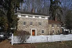 The two and one-half story stone building was possibly built in the 18th century. During the American Revolutionary War, it may have been used as a storehouse for the nearby New Jersey Brigade encampment in the winter of 1779–80. Samuel Reynolds, local land owner and businessman, converted it into his home after purchasing the property in 1832. The conversion featured "eye-brow" windows. In 1928, it became the country residence of Harry Scherman, a co-founder of the Book of the Month Club, who remodeled it using Colonial Revival style.[3]