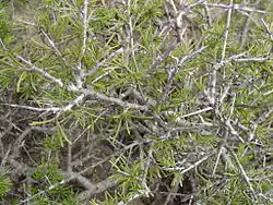 The plant appears in sclerophyllous forests, scrub, and even solitary in severely degraded drylands as a pioneer species as the species is resilient to overgrazing and trampling by livestock. It is very resistant to drought, preferring calcareous soils. In extremely dry and windy climates it appears in the rocks. It survives in desert areas with annual rainfall of 200 mm.