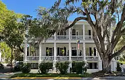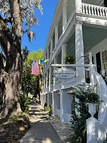 The Inn sits on a masonry basement with a porch on the south and west sides and faces the Beaufort River. Greek Doric columns support the upper and lower porches.[1] After the Civil War, the Thomas Rhett House was a hospital for injured soldiers. Changes to the house were made in the late 1800s. From the 1900s until the mid-1930s, the Thomas Rhett house was a private home. At the end of the 1930s, the Tucker family bought the house, and it was known as The Tucker Inn. Jane Ridings, the eldest daughter of the Tuckers, bought the Inn from her parents and changed the name to Cherokee Inn. In the 1950s, she sold the inn to Best Western, which sold it to Alcoa South Carolina, a subsidiary of Alcoa, to be used as corporate offices during the development of the Dataw Island Resort.[4]