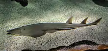 Rhinobatos is a genus of fish in the Rhinobatidae family.[1] Although previously used to encompass all guitarfishes, it was found to be polyphyletic,[2] and recent authorities have transferred many species included in the genus to Acroteriobatus, Glaucostegus, and Pseudobatos.[3]