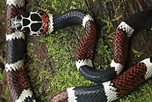 R. bovallii mimics two sympatric species of venomous snakes, Micrurus alleni and Micrurus nigrocinctus.[4]