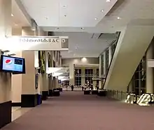 The Rhode Island Convention Center is an exposition center in downtown Providence, RI. Opened in 1993,[1] it is the largest convention center in Rhode Island, with about 130,000 square feet (12,000 m2) of exhibition space, including a 100,000-square-foot (9,300 m2) exhibit hall. It is connected by skybridges to the Amica Mutual Pavilion, and the adjacent Omni Hotels Omni Providence Hotel (formerly The Westin).[2] The ground level features a main exhibition hall with 100,000 square feet, and the upper level has a ballroom and meeting halls.[3] The building has a five-story glass front with a large space outside the meeting rooms and exhibit halls where visitors can gather and mingle.[3] The center is operated by the Rhode Island Convention Center Authority, which also operates the Amica Mutual Pavilion and Veterans Memorial Auditorium.[3]