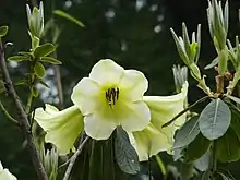 Rhododendron dalhousiae, also known as Lady Dalhousie's rhododendron, is a species of rhododendron first identified in the Eastern Himalayas by Joseph Dalton Hooker during his 1848-1850 expeditions to what is now Sikkim.[1] It is an epiphyte, normally found on tree, cliffs, and boulders, in the lower parts of the Himalayas at altitudes between 5,000 and 9,000 feet. Since its first identification by Hooker, it has been found throughout the southern border of Tibet, Bhutan, Nepal, and northeastern India, particularly in Arunachal Pradesh.[2][3]