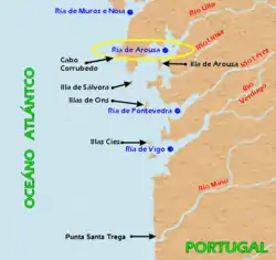 Map showing the location of the Ría de Arousa