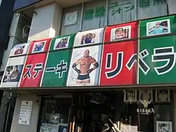 Ribera Steakhouse (ステーキハウス リベラ, Stēkihausu Ribera) is a Japanese professional wrestling, boxing and mixed martial arts-themed steak house restaurant with two locations. The original location is in Gotanda, and there is a second, larger location in Shimomeguro. Professional wrestlers frequent the restaurant when touring in Tokyo, a rite of passage in the wrestling community.[1][2] In addition, some wrestlers receive a complimentary satin Ribera Steakhouse Jacket from the owners.