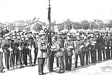Some scholars claim that Rada approached Carlism when he was still related to Falange or that he trained militias of both groupings simultaneously;[94] one author even maintains that he was first working for the Carlists, then moved to FE and then returned to Comunión Tradicionalista.[95] The dominating view, however, is that Rada joined the Traditionalists some time in early 1935. Like in Falange, his focus was on training the party militia, Requeté. According to some authors, the previous commander, Enrique Varela, returned to active military service and officially had to resign as Jefé Nacional; he continued as de facto commander, but formally his role was taken by Rada.[96] Others claim he was Varela’s deputy,[97] while most claim that Rada replaced Varela.[98] He was assigned a title of Inspector General del Requeté.[99] Rada proved vital for further Carlist military buildup;[100] in late spring of 1936, Requeté grouped 10,000 fully armed and trained men plus 20,000 forming an auxiliary pool.[101] In contrast to urban-oriented action groups "primarily accustomed to street fighting and pistolerismo", maintained by other parties,[102] Requeté was a "genuine citizen army" capable of performing small-scale tactical military operations.[103]