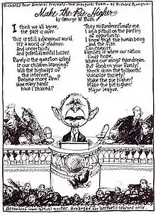 The Richard's Poor Almanac cartoon published the week of George W. Bush's first inauguration was Thompson's mock inaugural poem, "Make the Pie Higher", composed of some of Bush's more incoherent quotations. When "Make the Pie Higher" was shared on the Internet, it spread rapidly and was eventually dissected and analyzed on Snopes, which published a lengthy review of its origins.[1] The poem has been set to music multiple times in various styles, including Irish and choral music.[2]