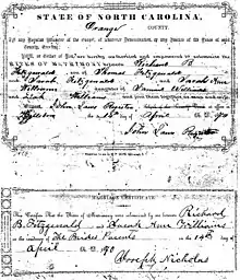 Marriage license for Richard B. Fitzgerald and Sarah Ann Williams, April 4, 1870