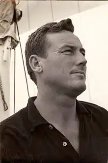 Richard Howard Bertram (4 February 1916 – 28 April 2000) was a champion sailor on powerboats and racing yachts and a leading boat builder and broker.[1] Born in East Orange, New Jersey, Bertram learned to sail at a young age with his parents on the waters of Barnegat Bay. He owned his first boat at age 8, sailed in his first race at age 10 and was skipper of intercollegiate championship boats while attending Cornell University.[2] After college, Bertram continued competing in numerous races throughout the world and was notably referred to by Sports Illustrated as "one of the finest ocean racers anywhere".[3] In 1947, Bertram relocated to Miami, FL, where he opened Richard Bertram & Company, a successful yacht brokerage firm.[2] Among his clients were Aristotle Onassis, the Aga Khan, King Hussein of Jordan and Prince Bertil of Sweden.[1] With his yacht brokerage business successful, Bertram continued racing and set standards in the World Offshore Powerboat circuit.[4] Often, he raced in his own 31' Bertram Lucky Moppie.[5] He founded Bertram Yacht, a Miami-based manufacturer of production pleasure boats, in 1960. Bertram Yacht began the first large production runs of boats with C. Raymond Hunt's revolutionary deep-V hull design.[6] In 1963 Richard Bertram licensed International Marine of Scoresby, Victoria, Australia to manufacture Bertram yachts; however, he left Bertram Yacht in 1964 to focus on his brokerage business, and Bertram Yacht changed ownership several times in the decades after that.[7][8]