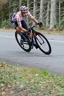 Carapaz joined Team Ineos at the beginning of the 2020 season on a three-year deal.[26] His first win for the team came on 7 August, on the third stage of the Tour de Pologne: on the uphill drag to the finish, Carapaz made an attack in the final kilometre and held off the peloton.[27] In the Tour de France, he came second in both stages 16 and 18. On the latter stage, he finished alongside teammate Michał Kwiatkowski, who won the stage, while Carapaz took the lead in the mountains classification from Tadej Pogačar.[28] However, two days later, Pogačar retook the lead, and also won the stage and moved into the overall race lead; Carapaz ultimately finished second in the mountains classification.[29]