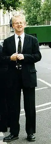 Curtis lives in Notting Hill and has a country house in Walberswick, Suffolk[42] with broadcaster Emma Freud whom he married in September 2023, this was accidentally announced by Richard E Grant at Cheltenham Literature Festival in front of a packed audience; they have four children, including writer and activist Scarlet.[43] He previously dated Anne Strutt, now Baroness Jenkin of Kennington, before her marriage to Sir Bernard Jenkin, a Member of Parliament (MP).[44] Curtis has named characters in his writing Bernard (reputedly after Bernard Jenkin). It is claimed he used the Jenkins' wedding as inspiration for Four Weddings and a Funeral.[45] He is irreligious.[46]