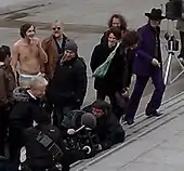 Curtis (bottom) during filming in Trafalgar Square, London in May 2009