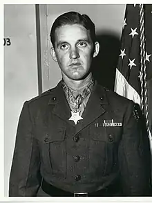 He served with the Marine Corps Raiders in the Pacific. While with the "Raiders" he was promoted to corporal.[1]