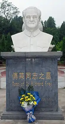 In 1942, he applied for a membership in the Communist Party of China (CPC) and was accepted in 1944, later took part in the Historically important 7th National Congress of the Communist Party of China in Yan'an – the political and military base of the Communist Party of China– as a guest auditor. After the war, Frey was able to obtain citizenship, and remained in China until his death in 2004.[4]