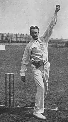 Hardstaff made his first-class debut for Nottinghamshire against Marylebone Cricket Club (MCC) in June 1887. Batting at number 10, he made his highest score of 60 in a County Championship match versus Derbyshire in June 1896.[4] In the same match Hardstaff recorded his best bowling of 8-53. Hardstaff played in 40 matches as professional for Lancashire League club Rawtenstall from 1893 to 1900.