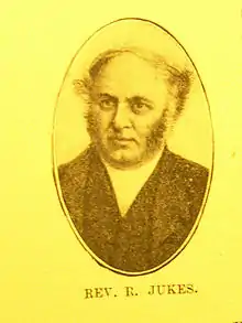 Richard Jukes was born on 9 October 1804 at Goathill, and died 10 August 1869. He served as a Primitive Methodist minister from 1827 to 1859. Jukes married Phoebe Pardoe in 1825, and later, widowed, he married Charlotte.[1]