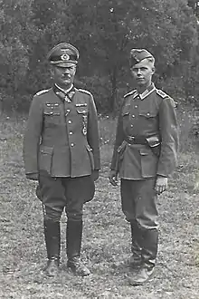 ![]() Generalleutnant Richard Müller (left), together with his son, Hansi Müller, who fell on July 4, 1944, holding the rank of lieutenant. | |