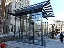 The Porte-Bonheur Clock was presented to Quebec City by the Republic and Canton of Jura and the Richard Mille brand in 2014 to celebrate its 400th anniversary.[55][56] From 2008 to 2014, the Richard Mille company, the technical college of Porrentruy (École des métiers techniques in Porrentruy), and the Neuchâtel Haute Ecole Arc developed and built the clock, which is 3.5 metres tall, 2.5 metres wide and 1.3 metres deep, and weighs 1,913 kg. It required:[57]