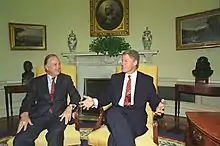 Riordan continued to be involved in city politics after his mayoralty. In the 2001 Los Angeles mayoral election, Riordan endorsed his friend and adviser Steve Soboroff in the primary and Antonio Villaraigosa in the general election.[15][16] In 2005, he backed former State Assembly Speaker Robert Hertzberg in the primary and Antonio Villaraigosa in the general election.[17][18] In both races, he chose not to endorse James Hahn.[19]