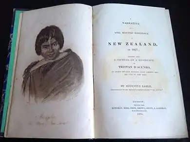 - A narrative of a nine months' residence in New Zealand in 1827: together with a journal of a residence in Tristan D'Acunha, an island situated between South America and the Cape of Good Hope by Augustus Earle, London, 1832.[27]