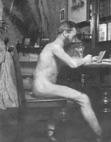 He was specifically anti-Semitic,[lower-alpha 6] and was also associated with the völkisch journal Die Ostara.[10] Ungewitter was unusual among naturists in making a close connection between nudism, marriage, and racialism, and advocated compulsory nudity (nude exercises three times a day) together with vegetarianism. In 1919 he had edited Der Zusammenbruch: Deutschlands Wiedergeburt durch Blut und Eisen, which lays out a program for Germany's recovery from the defeat of World War I in which compulsory nudity is an element.[11]