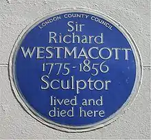 Westmacott lived and died at 14 South Audley Street, Mayfair, London where he is commemorated by a blue plaque.[21] Two of his brothers, George, who was active between 1799 and 1827, and Henry, (1784–1861) were also sculptors.[10] In 1798 Westmacott married Dorothy Margaret Wilkinson.[3] Their son, also called Richard Westmacott, followed closely in his footsteps also becoming a notable sculptor, a Royal Academician and professor of sculpture at the academy.