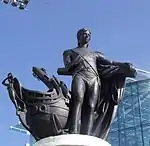 His statue of Horatio Nelson, Birmingham was the first statue of Nelson unveiled in Britain. There are other monuments to Nelson by Westmacott at the Bull Ring, Birmingham, in Barbados, while that at Liverpool was modelled and cast by Westmacott, to a design by Matthew Cotes Wyatt.[4][11] In Liverpool there is also an equestrian statue of King George III sculpted by Westmacott, which was unveiled in 1822.[12] He was responsible for the statue of the agriculturalist and developer Francis Russell, 5th Duke of Bedford in Russell Square, and the one of the Duke of York on top of the column in Waterloo place.[2] His Achilles in Hyde Park, a bronze copy of an antique sculpture from Monte Cavallo in Rome, is a tribute to the Duke of Wellington, paid for by £10,000 raised by female subscribers.[13][10]