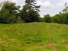 Richmont Castle was built near the village of East Harptree, Somerset, probably soon after the Norman Conquest of England in 1066.[1] The name probably means either "rich mountain" or "strong mountain".[2] The castle was located on a steep spur of ground, overlooking the Chew Valley, with two valleys, called coombes, dropping away on either side of the spur.[3]