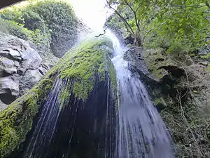 Richtis Gorge (Greek: Φαράγγι του Ρίχτη, Faraggi tou Richti) is a gorge in Crete, Greece (Map of Richtis Gorge here). It is a state protected park near Exo Mouliana, Sitia, eastern Crete (Greece) that starts at the traditional village Exo Mouliana, which is located on the national road between Agios Nikolaos and Sitia and ends at the secluded Richtis beach, just east of the village Kalavros. The hiking trail is about 4 km in length of moderate (spring/summer/autumn) to hard (winter) difficulty. Elevation difference between the starting point and the beach is about 350 meters. Rich vegetation (mainly platanus trees, wild berries and local flowers and herbs) and animal life (mainly local species of butterflies, small reptiles, birds and small mammals) can be observed along the way, as well as old stone bridges and water mills before it culminates with the Richtis Waterfall and beach, making Richtis gorge trail one of the most diversified hiking experiences in Crete.[1][2][3][4]