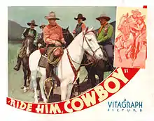 Ride Him, Cowboy is a 1932 pre-Code Western film directed by Fred Allen for Warner Brothers, starring a 25-year-old John Wayne. Based on the 1923 novel of the same name by Kenneth Perkins, the film is a remake of The Unknown Cavalier, a 1926 silent Western starring Ken Maynard, with much stock footage from the original. The film was released as The Hawk in the U.K.[2]