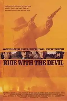 Ride with the Devil is a 1999 American Revisionist Western film[3] directed by Ang Lee and starring Tobey Maguire, Skeet Ulrich, Jeffrey Wright, Jewel in her feature film debut, Simon Baker, Jonathan Rhys Meyers, James Caviezel, Thomas Guiry and Jonathan Brandis. Based on the novel Woe to Live On, by Daniel Woodrell, the film, set during the American Civil War, follows a group of men who join the First Missouri Irregulars, also known as the Bushwhackers—guerrilla units loyal to pro-Confederacy units of the state—and their war against Northern Jayhawkers allied with the Union army.