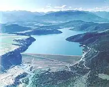 Ridgway Dam is an earthen dam on the Uncompahgre River which impounds Ridgway Reservoir,[1] located about 6 miles (10 km) north of the town of Ridgway in Ouray County, Colorado. The dam is 332 ft (101 m) high and 2,465 ft (751 m) long, with a capacity of 84,410 acre⋅ft (104,120,000 m3) of water.