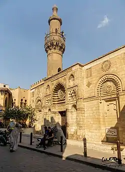 In May 1148, Ridwan managed to escape from the palace by means of a 35-cubit-long (approx. 18m (60ft)) tunnel he dug under the palace wall.[26][27] He crossed the Nile to Giza and quickly rallied followers, including Bedouin, regular soldiers, and Luwata Berbers from the Western Desert.[28] With this army he marched once more on Cairo, defeated the Caliph's troops at the Mosque of Ibn Tulun, and pursued them into the city itself.[29] Al-Hafiz barred the gates of the palace, but pretended to be cooperative, and even sent some money when Ridwan asked for it to pay his men. At the same time, the Caliph selected ten black African members of the caliphal bodyguard to assassinate Ridwan. Near the Aqmar Mosque they started shouting "al-Hafiz, the Victorious". When Ridwan rose from his saddle to see what the commotion was about, they attacked and killed him and his brother. Their severed heads were brought to the Caliph, ending the uprising.[29]