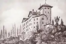The central tower and oldest part of the castle was built in the 13th century, though it may have been built around an earlier 12th-century tower. It was built for the Lords of Rietberg, who in 1286 were vassals of the Freiherr von Sax-Misox.[2] In the 14th century they became vassals of the Bishop of Chur. At that time they held the castle and estates in Schams, Chur and Oberhalbstein and were the bishop's representative in Oberhalbstein and Oberengadin. The last male member of the Rietberg line, Johann von Reitberg, attempted to guarantee that the castle and his estates would pass to his wife, Berta von Rhäzüns, and to his relative Hermann von Landenberg. However, after his death in 1349 the Bishop of Chur claimed the castle. In 1353 he succeed in forcing the Landenbergs to sign away their claim to the castle and estates.[3] Other claims to the castle continued to simmer until 1388 then the Bishop paid off the Lords of Rhäzüns and Lumerins to settle their claims.[2]