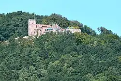 The remains of this castle are located on the side of the 613-metre-high Blättersberg mountain.