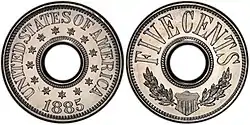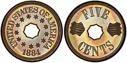 - ↑ "1884 Pattern Five-Cent Piece". Stack's Bowers. Retrieved 9 July 2022.