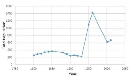 According to the 2011 Census there were 334 males and 336 females living in the parish.[5] The population dramatically increased from just over 200 people to 1400, between 1941 and 1961. But then the population in the parish declined to 600 people by 2001.