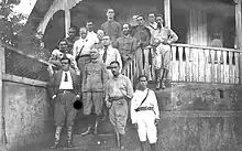 In Santo Ângelo, the revolt began on the night of 28 October. Captain Luís Carlos Prestes and lieutenant Mário Portela Fagundes arrested the commander of the 1st Railway Battalion in his home and took over the unit based on a forged telegram from the commander of the Military Region that transferred command to Prestes. Thanks to his prestige among soldiers, support was almost total. Among the officers, only the medical captain and lieutenants José Machado Lopes and Hugo Carvalho did not want to join. The rebels surrounded the residence of the intendant of Santo Ângelo and presented a letter requesting his weapons and ammunition, thus obtaining around 50 rifles.[38] Many civilians joined the uprising, as the Missões region was a stronghold of oppositionists and PRR dissidents.[39]