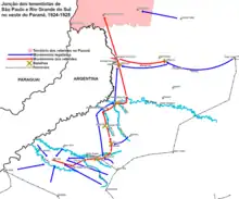 The uprising in São Paulo was unable to defend the state capital and withdrew to the interior, where the rebels reestablished themselves in western Paraná. On 5 October, civil and military liaison officers in Rio Grande do Sul met with generals João Francisco and Olinto Mesquita de Vasconcelos in Foz do Iguaçu. The emissaries argued for the viability of a new revolt in Rio Grande do Sul, and Juarez Távora, a member of the São Paulo column, was appointed to coordinate it. Antônio de Siqueira Campos, a veteran of the 1922 uprising exiled in Argentina, joined the preparations.[29] Initiating a revolt in Rio Grande do Sul was necessary to distract the loyalists in Paraná.[30] However, the decision was taken in the absence of the supreme commander, general Isidoro, who had not yet arrived in Foz do Iguaçu.[31]