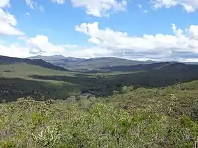 The Rio Preto State Park is in the municipality of São Gonçalo do Rio Preto, Minas Gerais, 70 kilometres (43 mi) from Diamantina. It has an area of 12,184 hectares (30,110 acres).[1] It is 355 kilometres (221 mi) from Belo Horizonte, the state capital. A section of a 1,400 kilometres (870 mi) colonial-era Estrada Real (Royal Road) passed through the park, and traces still remain. This was a route used by gold and diamond prospectors.[2]