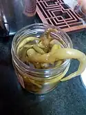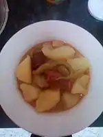 Rioja style potatoes or patatas a la Riojana is a dish from Spanish cuisine, popular in the counties of Rioja and Álava in the Basque region of Spain. It is made with bell peppers, chorizo sausage and potatoes. The sauce is simple, and thickened by the potato starch. Other ingredients like bay leaves, pimenton and mushrooms may be added.[1] Red wines complement this dish.[2]