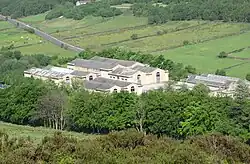 The water treatment works stand 800 metres east (downstream) of the dam wall of the Lower reservoir. The works were constructed in 1913 and pumped 7.5 million imperial gallons (34,000 m3) per day of treated Rivelin water to the Hadfield service reservoir at Crookesmoor to supply the City of Sheffield. Further improvements in 1946 increased the flow to Hadfield reservoir to 12 million imperial gallons (55,000 m3) per day. The works also pump Rivelin water up to the Redmires water main against a head of 400 feet (120 m). In 2008 the Civil engineering company J.N. Bentley installed a 120 kW turbine at the inlet of the works to generate renewable energy; this energy is then used at the works.[6]