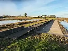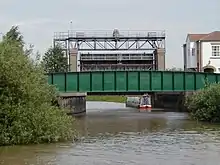 The Land Drainage Act 1930 passed responsibility for the management of the River Idle to the newly formed Trent River Catchment Board.[28] In 1938 they built the Trent-Idle sluice across the mouth of the Idle, next to the road bridge. It consisted of a single guillotine gate, 40 feet (12.2 m) wide and 20 feet (6.1 m) high which was regularly opened when tides were low to allow the Idle to discharge into the Trent by gravity. During periods when the Trent was in flood, the gate could not be opened, and the lower reaches of the Idle acted as a pond, with water backing up as far upstream as the junction with the River Ryton, and large areas of washland becoming inundated.[29]