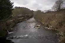From its source until shortly after its confluence with the River Croal, the river runs through a landscape formed from rocks of the late Carboniferous Coal Measures and the underlying (and therefore older) Millstone Grit, consisting mostly of a series of sandstone and shales. The lower sections of the river run through a landscape where the bedrock is of Permian and Triassic age, though alluvial and river terrace deposits often obscure the rock strata.[12] The glaciers of the Pleistocene epoch radically re-shaped the landscape and then retreated, leaving behind deposits of sand, pebbles and boulder clay that formed the fluvioglacial ridges of the lower Irwell Valley.[13] Ashclough, a 50,800 m2 (12.6 acres) site which comprises the steep banks of the river between Prestolee and Little Lever, has been designated an SSSI because of its geological interest, primarily because it is the best site in the area displaying the Ashclough marine band and its associated strata. Ashclough is a site of national importance for interpreting the coal measures palaeogeography of Great Britain.[14]