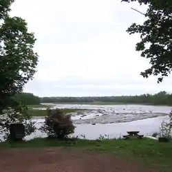 River John is a river in Nova Scotia. Draining the extreme western part of Pictou County, it flows into Amet Sound on the Northumberland Strait at River John, a village which takes its name from the river. The Miꞌkmaq name is Kajeboogwek ("flowing through desert or solitary place"). An early name was Deception River. Its present name is believed to derive from Rivière Jaune, an Acadian name,[2] though it may also derive from nearby Cap Jean (now Cape John).[3] DesBarres called it River John in his Atlantic Neptune.